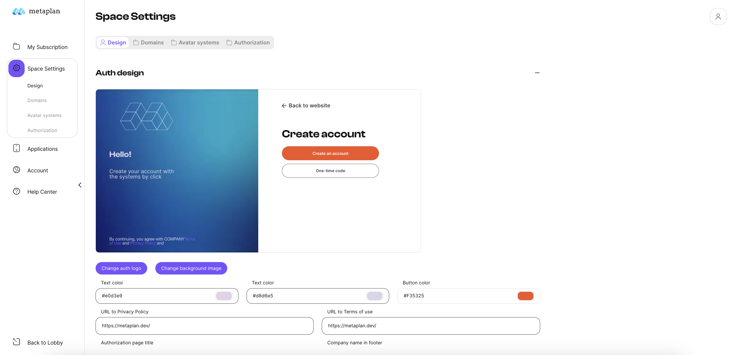 In this section, you can customize the appearance of the authorization page.