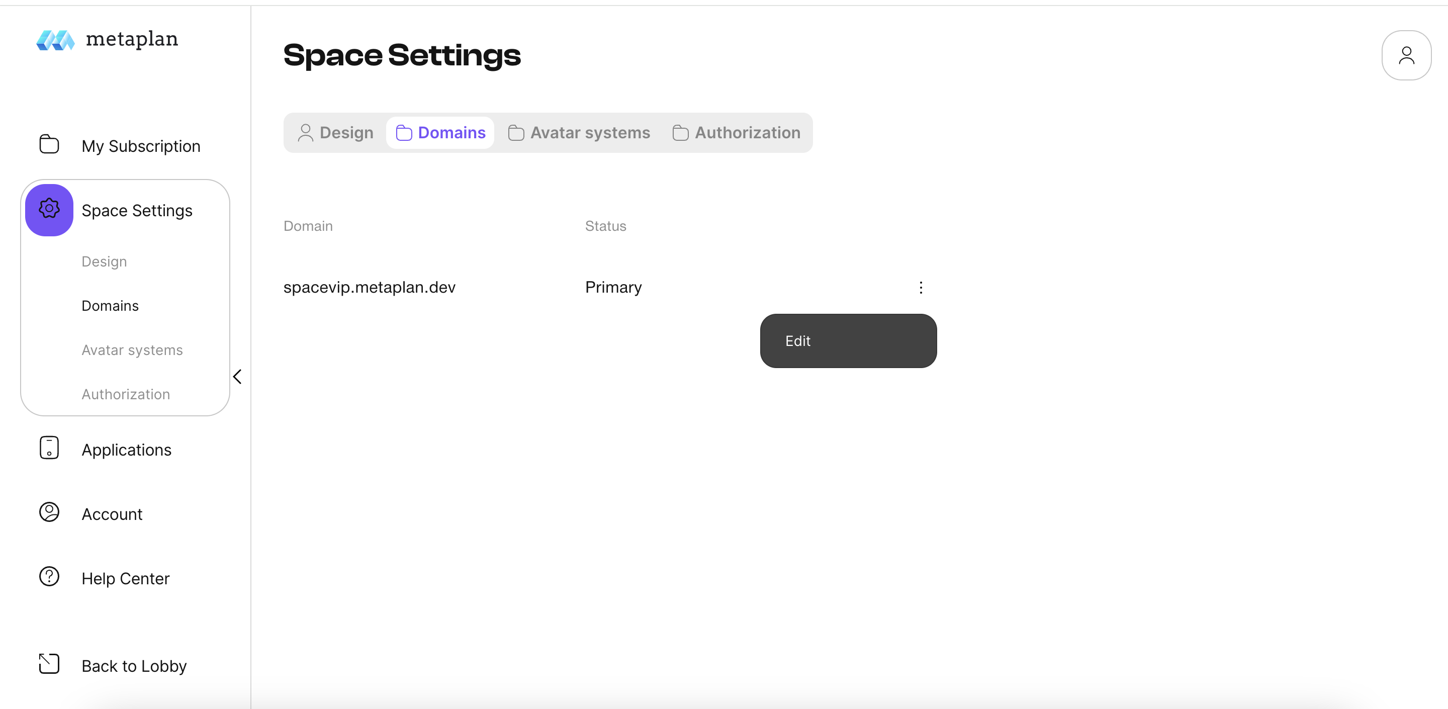 The Domains subsection allows you to manage the domain names for your virtual worlds.