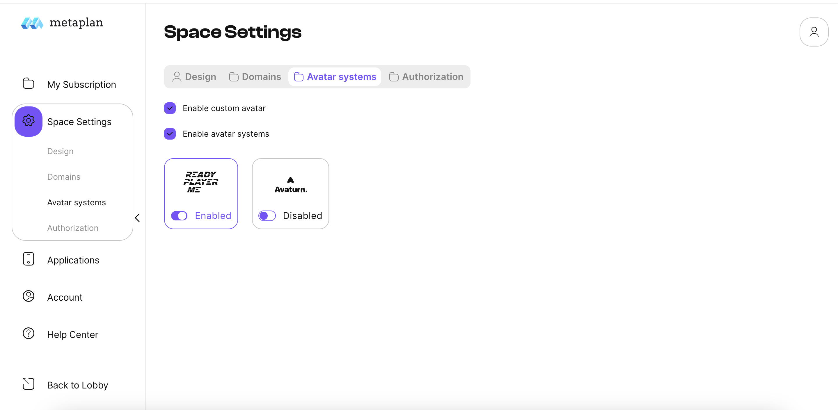 and the integration of different avatar systems. Enable or disable avatar systems as needed.