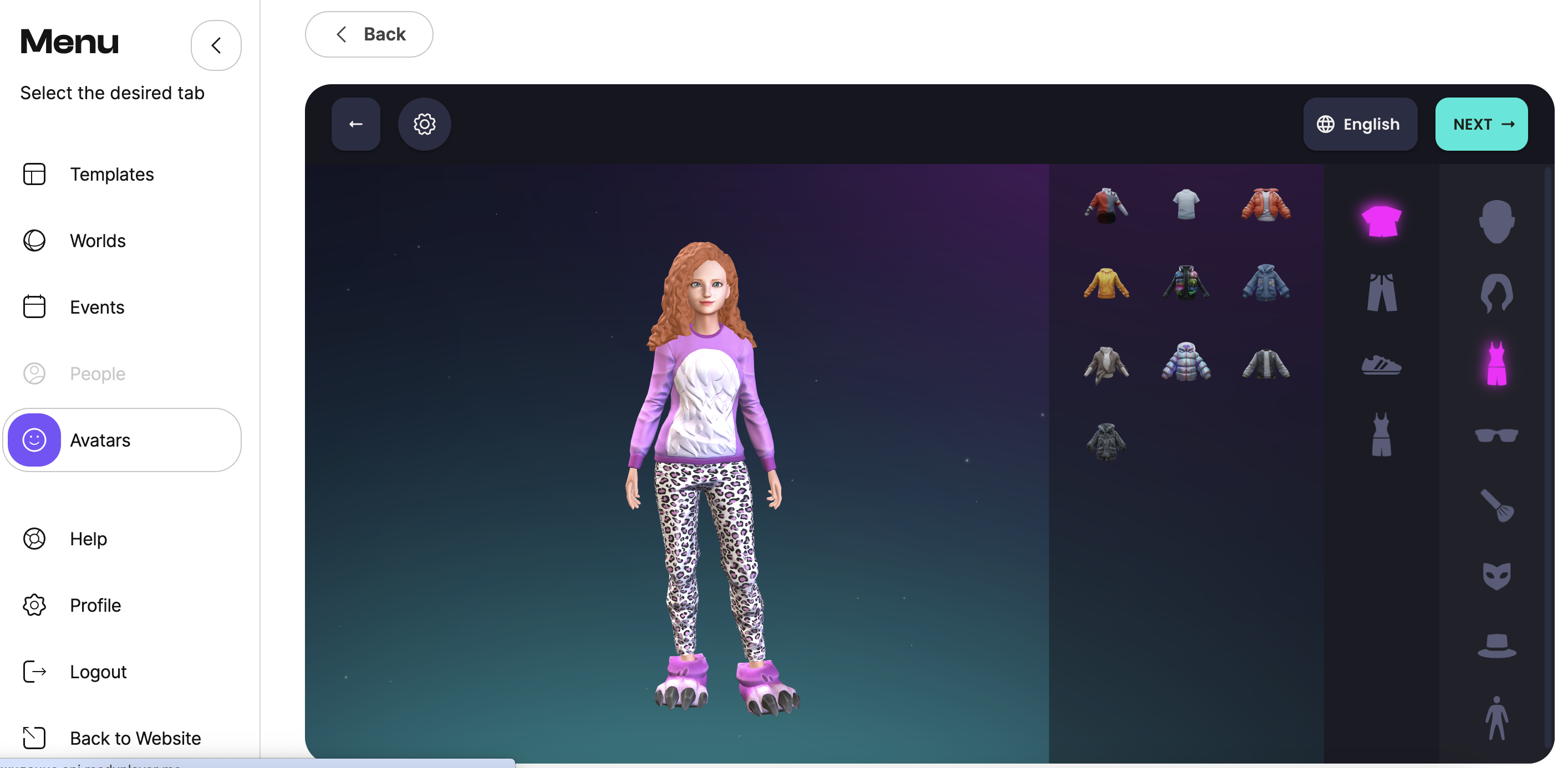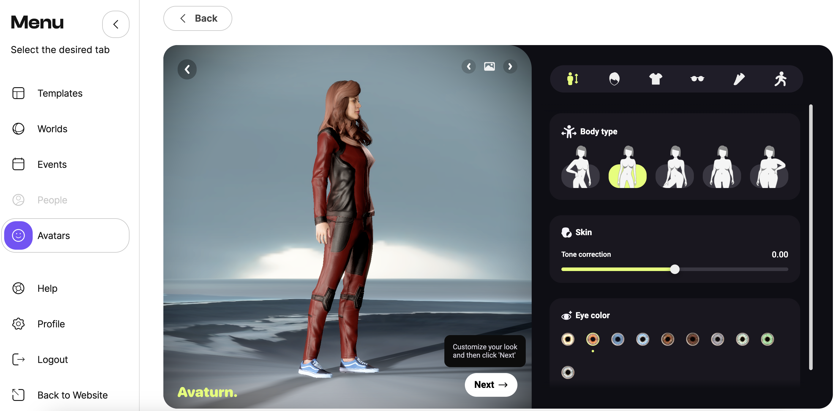 - Customize your avatar using the suggested tools.