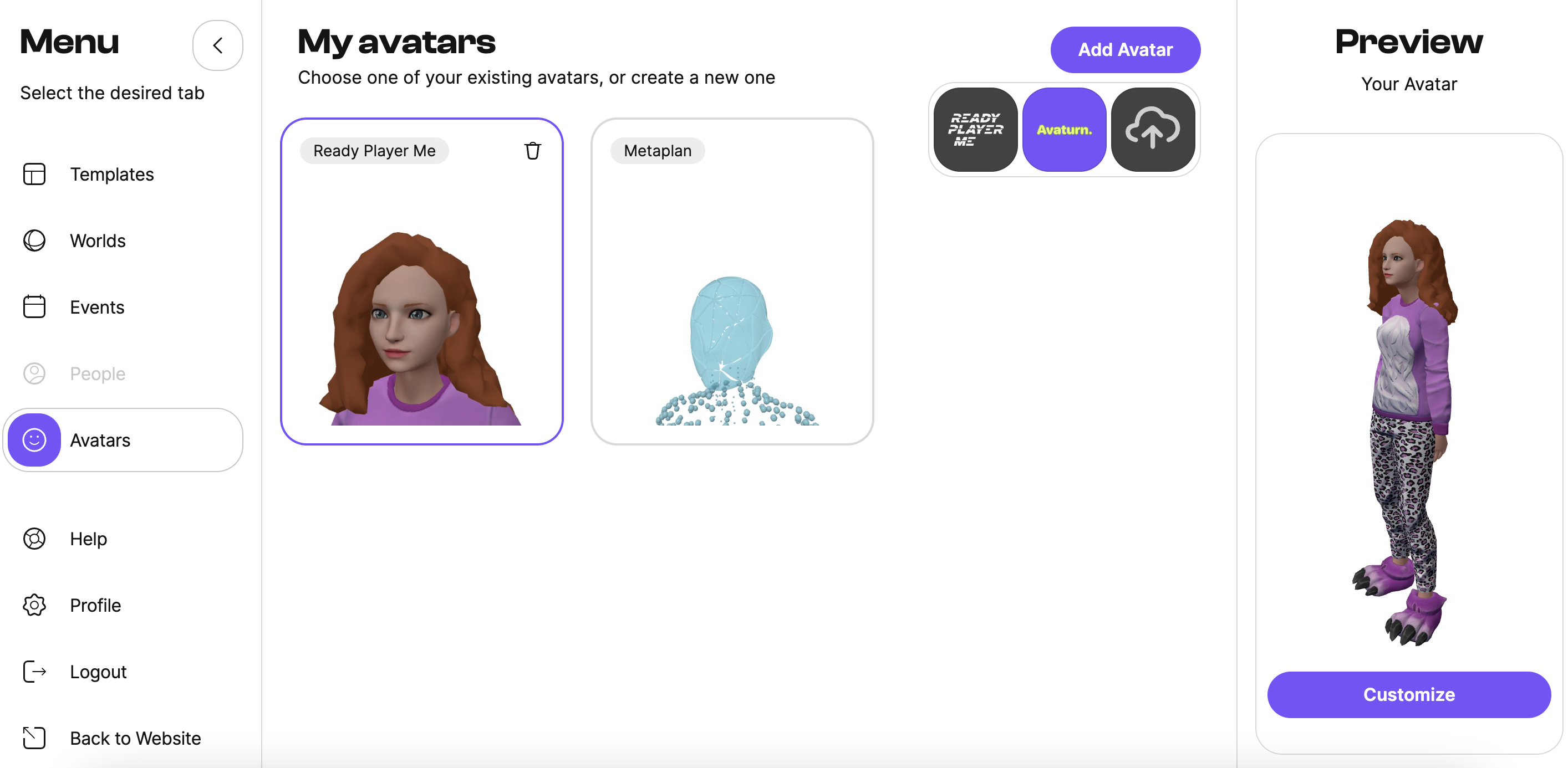 - Select Avaturn from the list.
