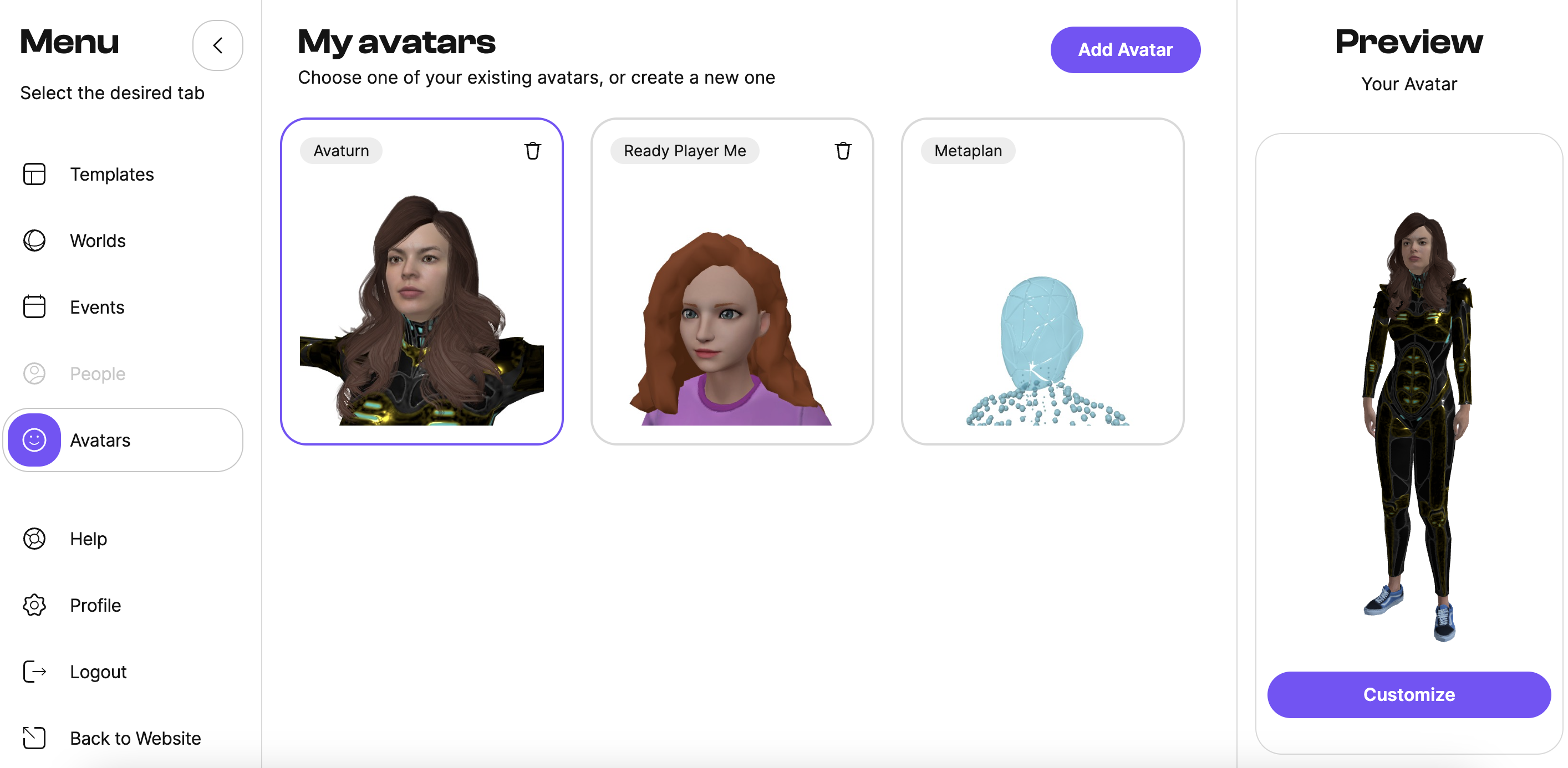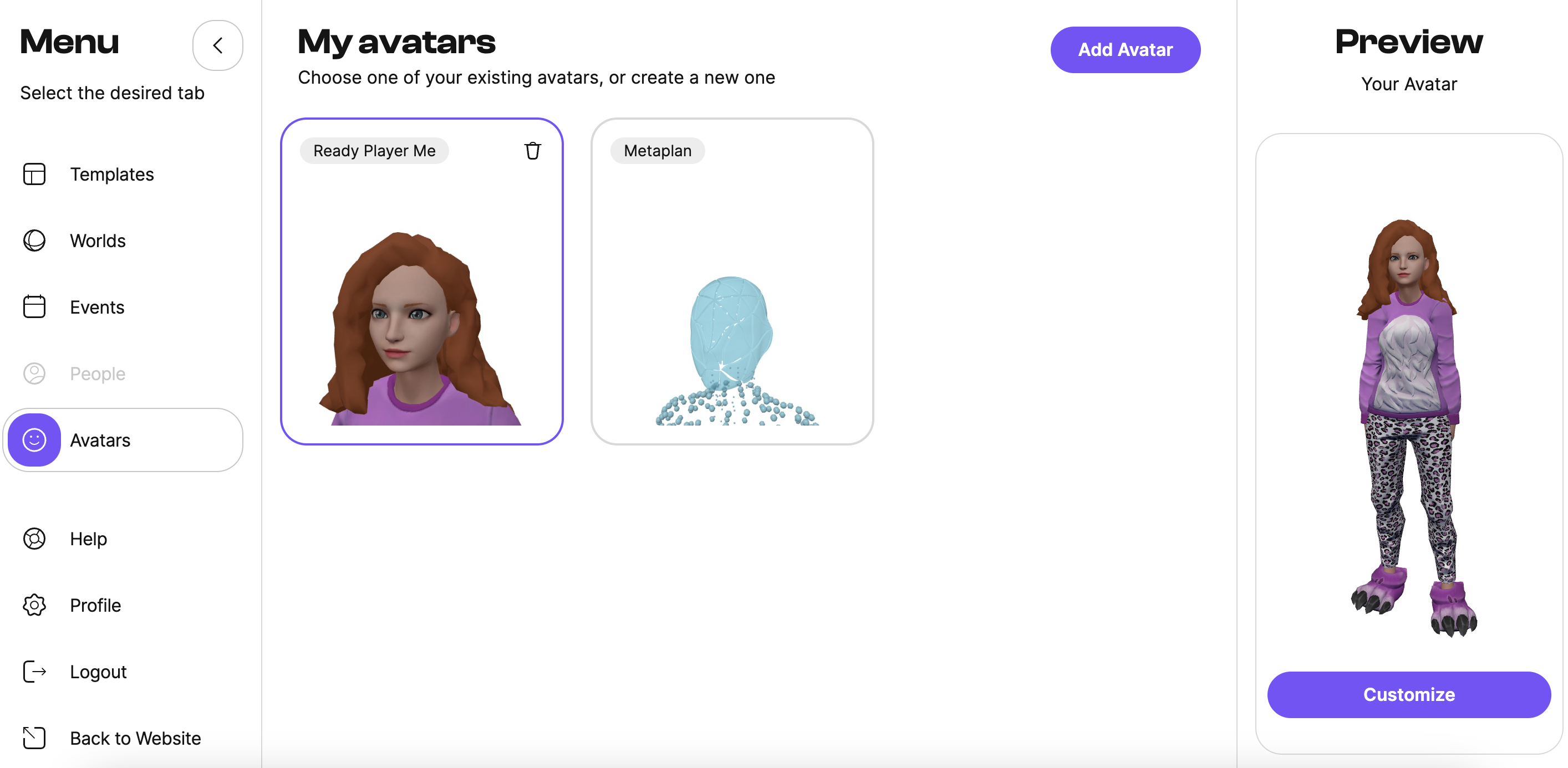 Metaplan supports a variety of avatar systems to provide users with a diverse range of options for their