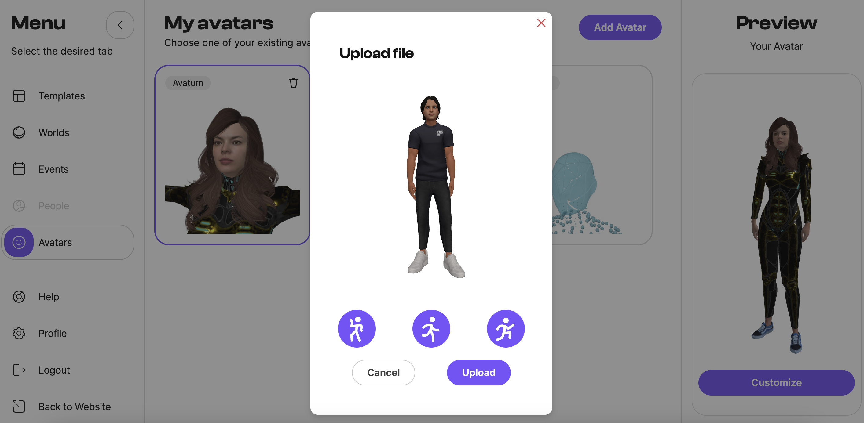 To use Avaturn avatars with Metaplan, simply select Avaturn from the list